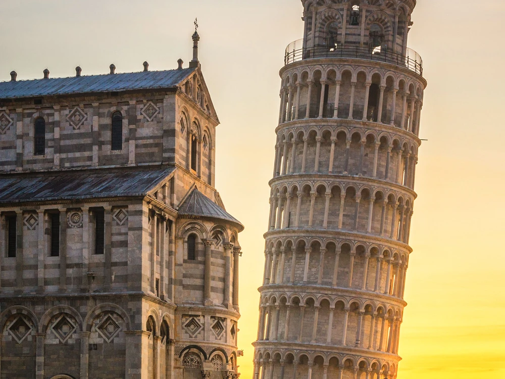 Pisa Leaning Tower Torre di Pisa and the Cathedral Duomo di Pisa at Sunrise, Pisa, Italy             Keywords:                        pisa, tower, leaning, sunset, sunrise, city, italy, cityscape, landscape, cathedral, monument, sunny, sun, tuscany, famous, architecture, blue, building, europe, european, green, italian, landmark, medieval, renaissance, sky, travel, square, ancient, attraction, basilica, church, culture, dome, duomo, historic, history, marble, old, piazza, pisa cathedral, pisa italy, pisa tower, toscana, grass, pisa night, art, urban, torre, white                           SHUTTERSTOCK CAPTION:                       Pisa, Italy - July 4: Pisa Leaning Tower Torre di Pisa on July 4, 2021 in Pisa. Pisa Leaning Tower is a major tourist attraction in Italy.                GETTY CAPTION:               Pisa, Italy - July 4, 2021: Pisa Leaning Tower Torre di Pisa and the Cathedral Duomo di Pisa. Pisa Leaning Tower is a major tourist attraction in Italy.