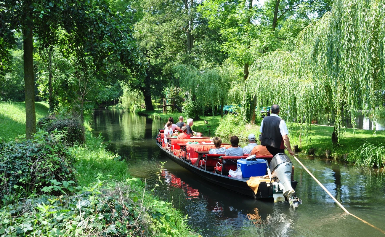 • Fahrt ab Parkplatz Lübbenau mit der Spreewaldmolly zum Hafen (nachmittags Rücktour: Extrakosten o. Spaziergang ca. 15 min. ebenerdig); Mittagessen am Hafen, Kahnfahrt ab/an Lübbenau inkl. Gurkenkostprobe und Stippvisite ins romantische Spreewalddorf Lehde; ca. 1 Std. Freizeit im Hafengelände, z. B. zum Gurkeneinkauf oder indiv. Kaffeetrinken.